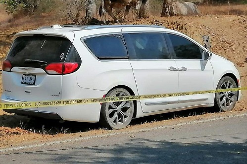 El hallazgo del vehículo se dio aproximadamente a las 11 de la mañana, en donde a través de llamadas a los números de emergencia alertaron a las autoridades sobre una camioneta abandonada Chrysler tipo Pacífica color blanco, con al parecer cuerpo humanos.