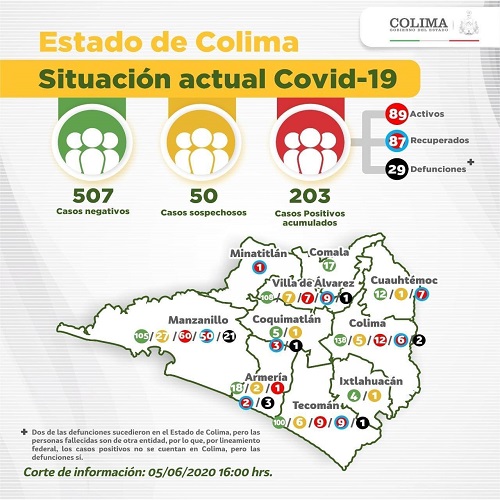 Con los resultados emitidos por las instituciones del Sector Salud, este día fueron confirmados 14 nuevos casos de Covid-19, máximo de casos registrados a la fecha en un día, con lo que se alcanzan 203 personas afectadas por el virus del SARS-Cov-2.