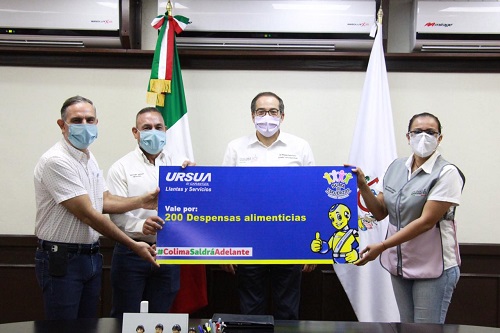 En la sala de juntas de Casa de Gobierno, el mandatario estatal agradeció al Grupo Ursua que tiene 76 años establecido en Colima, por su gesto de generosidad, así como a todas las empresas que han hecho aportaciones importantes, ya que dijo con ello ayudará a salir adelante en esta pandemia por Covid-19.