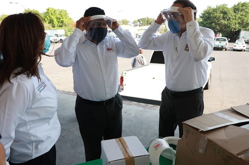 Previamente, en el almacén central de la Secretaría de Salud, el mandatario estatal, agradeció a Grupo Bimbo por la generosa donación de 20 cajas con 3 mil caretas y viseras, lo cual señaló es parte de la actitud solidaria y altruista de muchas empresas que se están sumando a apoyar en esta pandemia.