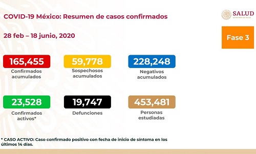165 mil 455 casos confirmados