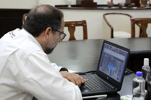Al presidir una videoconferencia con personal médico que atiende pacientes Covid, el gobernador José Ignacio Peralta Sánchez reconoció la labor que realizan por lo que les externó su solidaridad, respaldo y disposición para resolver sus necesidades, así como compartir sus problemáticas enfocadas a darles solución.