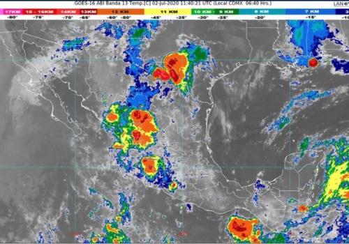 Hoy jueves 2 de julio se prevé que la Onda Tropical Número 11 interaccionará con un canal de baja presión sobre la Sonda de Campeche, originando lluvias intensas en Chiapas, Guerrero y Oaxaca, así como lluvias puntuales fuertes e intervalos de chubascos en Campeche, Quintana Roo, Tabasco, el sur de Veracruz y Yucatán.