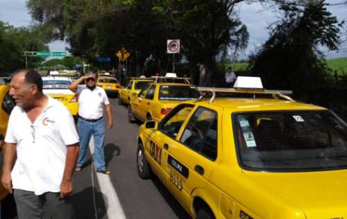Un grupo de taxistas tomaron la carretera Guadalajara-Colima para exigirle a la Secretaría de Movilidad que aplique la ley en contra de los mototaxis que están prestando el servicio en diversos municipios del estado.