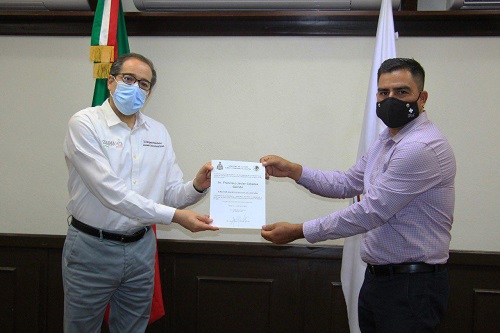 En la sala de juntas de Casa de Gobierno, el mandatario le entregó este nombramiento y lo exhortó a trabajar en beneficio de la sociedad colimense.