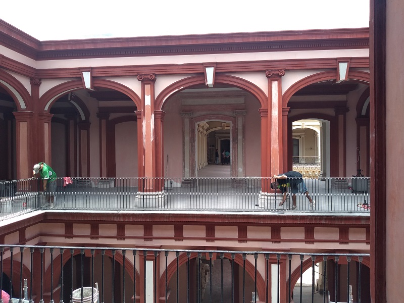 Durante un recorrido realizado por el interior de Palacio de Gobierno de Colima, el cual se encuentra en proceso de remodelación, la secretaria de Cultura, Oriana Zaret Gaytán Gómez, junto con la arquitecta Rebeca Rodríguez Ferretiz, encargada del proyecto de restauración de Palacio de Gobierno, dieron a conocer sobre las diversas actividades, obras y rescates históricos que han realizado.