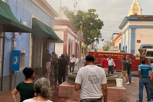 Al lugar acudió el Cuerpo de Bomberos Voluntarios de Colima quienes pudieron controlar el incendio, ya que antes de su llegada personas del lugar trataron de apagarlo con cubetadas de agua que tomaban de las fuentes del andador Constitución.