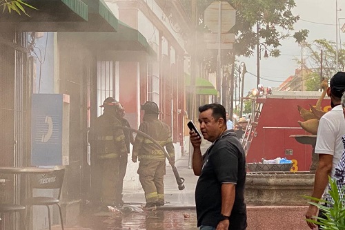 Grandes pérdidas materiales dejó e incendio de una tienda localizada en el cruce de la calle 5 de Mayo con el andador Constitución, de la ciudad de Colima