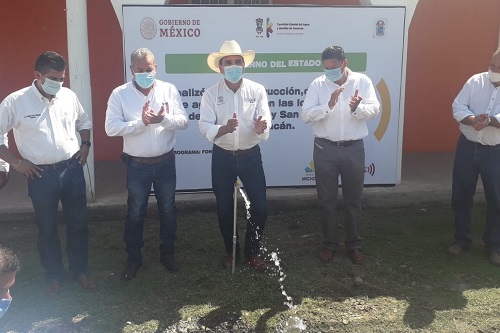 Coahuayana, Mich. Este viernes por la tarde, en un evento especial celebrado con todas las medidas sanitarias para no contagiarse del Covid 19, el gobernador Silvano Aureoles acompañado del alcalde Roberto Nevárez inauguraron la reconstrucción del sistema de agua potable en las localidades de Coahuayana ejido y San Vicente, en lo que dijo, fue su octavo evento del día.