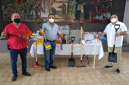 Acompañado del alcalde, Felipe Cruz Calvario, el legislador entregó al equipo de Protección Civil, palas, rastrillos, impermeables, cartearas, tijeras, machetes. El monto total de la aportación fue de 5 mil pesos.