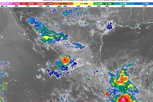 Otro canal de baja presión, que se extenderá desde el norte hasta el centro del país, en interacción con inestabilidad atmosférica superior, propiciará lluvias locales fuertes en Chihuahua, Ciudad de México, Estado de México, Guanajuato, Guerrero, Jalisco, Michoacán, Morelos, Nayarit, Oaxaca, Puebla, Quintana Roo, Sonora, Tlaxcala, Veracruz y Yucatán, así como intervalos de chubascos en Aguascalientes, Colima, Durango, Hidalgo, Querétaro, San Luis Potosí, Sinaloa, Tamaulipas y Zacatecas.