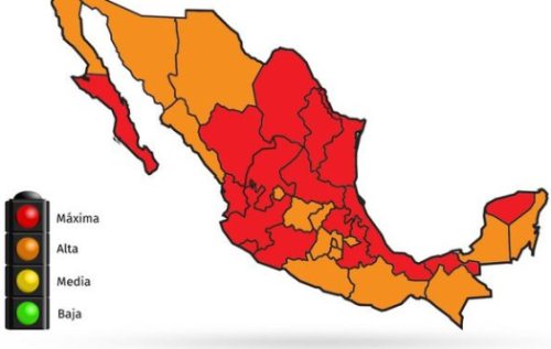 Las restantes entidades federativas seguirán en semáforo rojo: Baja California Sur, Coahuila, Colima, Durango, Hidalgo, Jalisco, Michoacán, Nayarit, Nuevo León, Puebla, San Luis Potosí, Tabasco, Tamaulipas, Veracruz, Yucatán y Zacatecas.