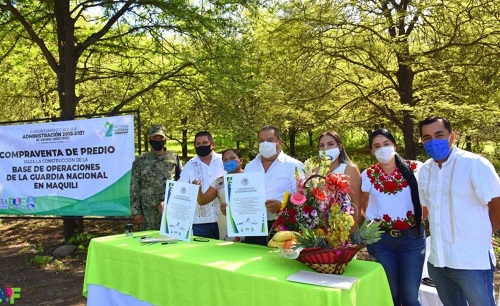 Aquila, Mich. Este lunes, el Gobierno Municipal que preside Mohammed Ramírez, llevó a cabo la compra venta y entrega simbólica a la Guardia Nacional, del terreno denominado Iguame, el cual tiene como destino ser utilizado para la construcción de una Base de Operaciones de esta nueva institución federal de seguridad.