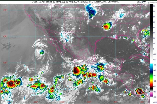 Hoy miércoles 12 de agosto se pronostican lluvias puntuales intensas (de 75 a 150 milímetros), actividad eléctrica, rachas de viento y posibles granizadas para Colima, Guerrero, Jalisco, Michoacán y Nayarit.