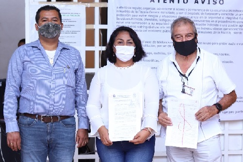 La presidente municipal de Manzanillo, Griselda Martínez Martínez, acudió ante la Fiscalía General del Estado (FGE) a presentar una denuncia penal en contra de un funcionario municipal de la administración porteña y quien resulte responsable por el delito de peculado.