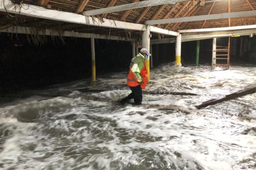 En ese lugar se apoyó para retirar mercancía, mesas, sillas y sombrillas, ante la presencia de oleaje elevado. Asimismo, se les solicitó a la población que se retiraran de las playas.