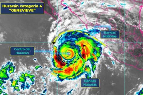 El Huracán “Genevieve” de categoría 4 en la escala Saffir-Simpson, se localiza al oeste-suroeste de las costas de Colima, con desplazamiento hacia el noroeste, paralelo a las costas mexicanas.