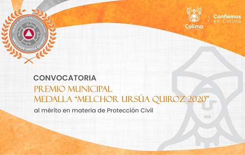 Con el objetivo de reconocer las acciones de protección, solidaridad y asistencia, en beneficio de los colimenses, en el marco del Día Nacional de Protección Civil, el Cabildo del Ayuntamiento de Colima, convoca a todos los ciudadanos de Colima, a participar para el premio municipal Medalla Melchor Ursúa Quiroz 2020.