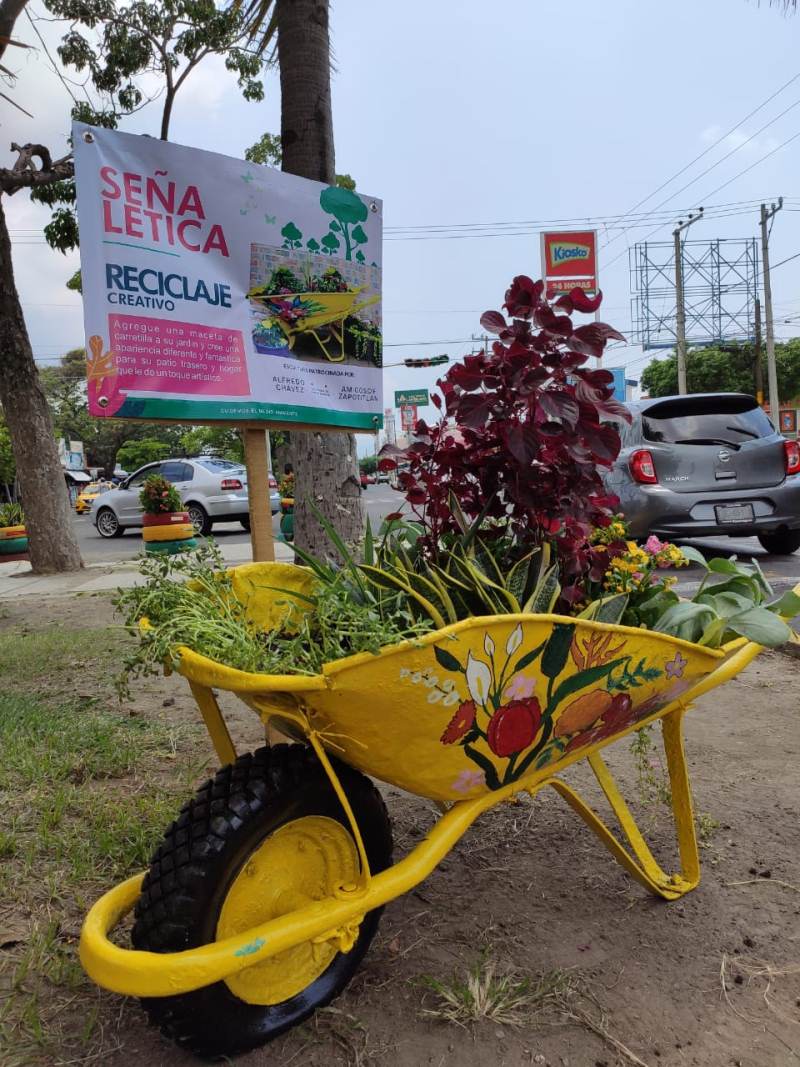 Villa de Álvarez, Col. Como una manera de mejorar la imagen general de las calles y avenidas de Villa de Álvarez, utilizando materiales reciclados, ciudadanos villalvarenses implementaron el proyecto llamado ‘Señalética’, convirtiendo el material reciclado en bellas esculturas.