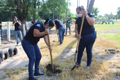 ARMERÍA.- Con el apoyo de vecinos de la colonia Sagrado Corazón y en coordinación con Pronatura, el Presidente Municipal Salvador Bueno Arceo y funcionarios llevaron a cabo una reforestación de diversas especies de árboles en la colonia Sagrado Corazón, tales como tabachín, mango y guanabo.