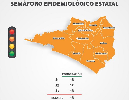 La titular de Secretaria de Salud y Bienestar Social del Gobierno del Estado, Leticia Guadalupe Delgado Carrillo, confirmó que Colima pasó del rojo de máximo riesgo al naranja de alto riesgo por el Covid-19, al registrar en las 2 semanas recientes una disminución en porcentajes, tasas y tendencias de los 10 indicadores de estimación de riesgo epidémico por esta enfermedad viral.