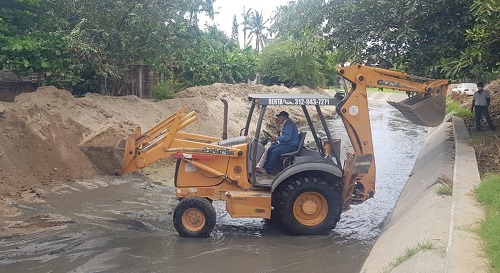 Ante los grandes daños que han dejado las fuertes tormentas en el municipio de Manzanillo, el Senador de la República Joel Padilla, envio maquinaria a la Delegación de Santiago para limpiar la gran cantidad de tierra acumulada en el cause del arroyo de Santiago y así evitar nuevas inundaciones.