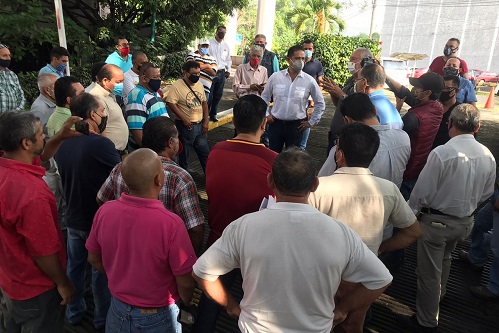 El diputado Carlos Farías Ramos, Presidente de la Comisión de Gobierno Interno y Acuerdos Parlamentarios del Congreso del Estado de Colima, recibió hoy jueves en la sede del Poder Legislativo a un grupo de aproximadamente 30 trabajadores del volante en su modalidad de taxi, encabezados por su dirigente Hugo Chávez Ríos, quienes le plantearon al legislador una serie de inconformidades con relación al servicio que vienen prestando en diversos municipios de nuestra entidad las moto-taxis.