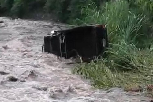 En el primero una camioneta cayó al río y fue arrastrado por el caudal hace unos momentos en el río que se encuentra por la calle Los Regalado (entre Margarita Maza de Juárez y Emilio Carranza), por lo que se solicitó el apoyo de las autoridades.