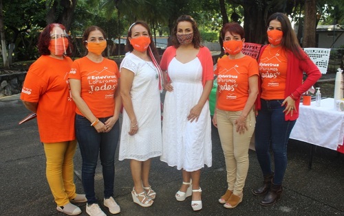 Azucena López Legorreta, Presidenta del Desarrollo Integral de la Familia en el Municipio de Colima, en el marco de la conmemoración del inicio de la Independencia de México y atendiendo las indicaciones de sana distancia, uso de cobrebocas, lavado de manos, así como estar en lugares abiertos, se reunió con personal que labora en la institución con el objetivo de fortalecer el espíritu aliado entres las mujeres y hombres que todos los días se dedican a la tarea asistencial en beneficio de las familias más vulnerables del municipio de Colima.
