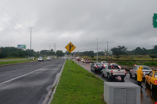 Ante la gran cantidad de agua que cayó principalmente en la zona norte, se ordenó el cierre a la vialidad, desde el Hospital Regional, hasta la plaza Zentralia, desde las 6:30 P.M. a las 8:00 P.M., cuando disminuyó el riesgo de inundación en la zona.