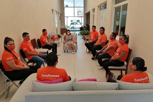 Azucena López Legorreta, Presidenta del Desarrollo Integral de la Familia en el Municipio de Colima, llevó a cabo una reunión con su equipo de voluntarios Jóvenes Aliados, quienes son coordinados por Javier Nery y cuyo objetivo fue la presentación de su nuevo programa de trabajo el cual está sustentado en la protección, prevención y promoción de los derechos humanos y las libertades desde las Juventudes de Colima.