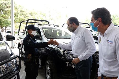 En el Parque González Lugo, Peralta Sánchez explicó que el gobierno estatal adquirió tres patrullas con recursos por el orden de 2 millones 159 mil 649 pesos, del Fondo de Aportaciones para la Seguridad Pública (FASP 2020).