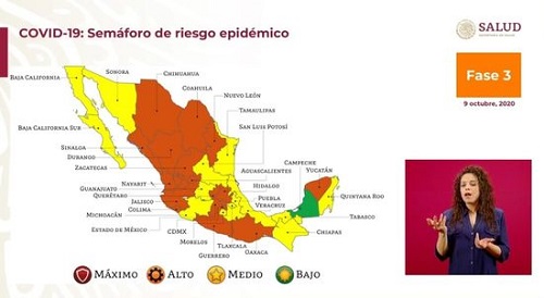 Destacaron las autoridades de salud federal que para este semáforo epidemiológico que estará vigente del 12 al 25 de octubre, siete entidades incrementaron su riego de pasar del color amarillo al anaranjado, cinco disminuyeron del anaranjado al amarillo y 20 estados se mantienen con el mismo riesgo epidemiológico.