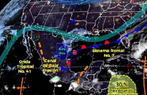 Asimismo, la masa de aire frío asociada, mantendrá ambiente frío en estados del norte y centro del país, bancos de nieblas en sierras del noreste y oriente de México.