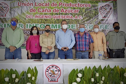 Al evento que tuvo lugar este mediodía en el Auditorio del Ingenio de Quesería, asistió Antonio Ramírez, en representación de Daniel Pérez, dirigente nacional de los cañeros; Laura Hernández Vizcaíno, gerente general del Ingenio de Quesería, y Agustín Morales, en representación del gobernador del estado.