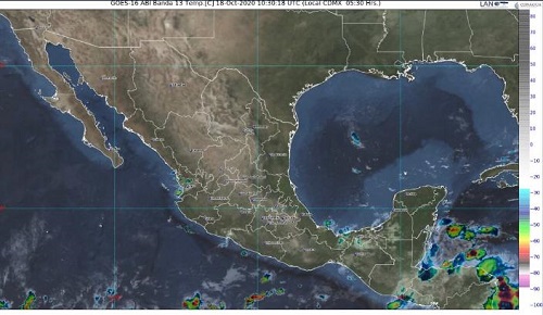 Hoy domingo 18 de octubre, el frente No. 7 se disipará sobre el oriente del Golfo de México, mientras que la masa de aire asociada, modificará sus características térmicas dejando de afectar al territorio nacional.