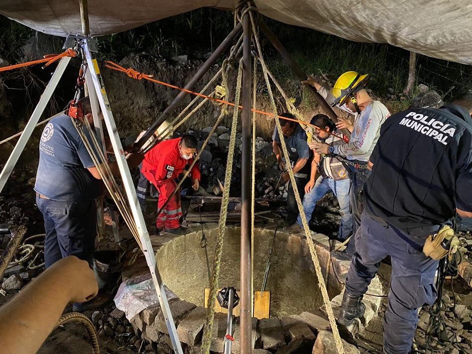 Cuauhtémoc, Col. Las labores para rescatar a un hombre que quedó atrapado dentro de una noria de 12 metros de profundidad no han parado y seguirán hasta poder sacarlo del lugar, aseguró el alcalde de Cuauhtémoc, Colima, Rafael Mendoza Godínez.
