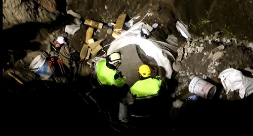 Antes de su llegada se lograron avances importantes en la estabilización del área, se logró retirar parte del material que cubre a la persona atrapada.