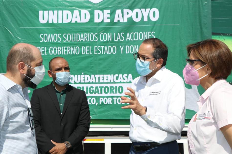 Acompañado por la secretaria de Salud, Leticia Guadalupe Delgado Carrillo, refirió que gracias a las donaciones de las empresas y la sociedad es que se ha avanzado en la atención a la contingencia, ya que de lo contrario, aseguró, su administración hubiera tenido que resolver las necesidades únicamente con recursos propios.