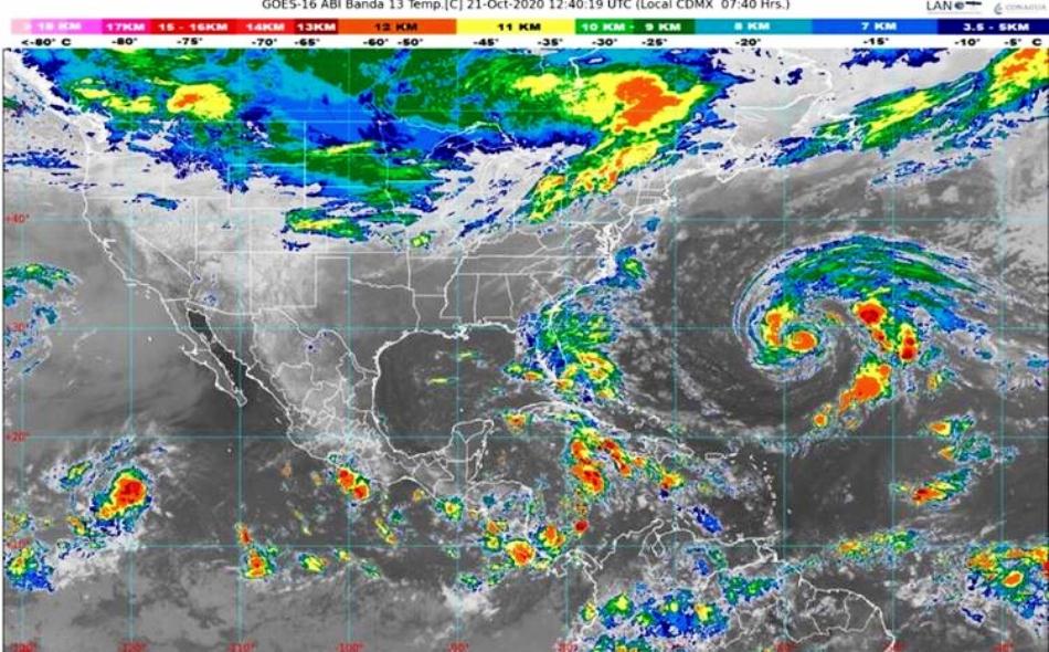 Este miércoles, se pronostican lluvias fuertes para Campeche, Chiapas, Oaxaca, Quintana Roo, Tabasco, Veracruz y Yucatán.