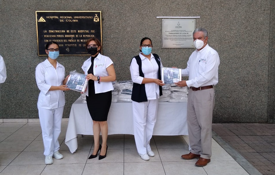 En el marco del Día social del Médico, el titular de la Secretaría de Educación, Jaime Flores Merlo, entregó 60 overoles laminados a personal médico que atiende el área Covid, del Hospital Regional Universitario.
