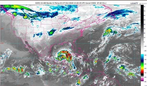 Hoy martes 27 de octubre, la amplia circulación de la tormenta tropical “Zeta” ocasionará lluvias intensas (de 75 a 150 milímetros) en Yucatán.