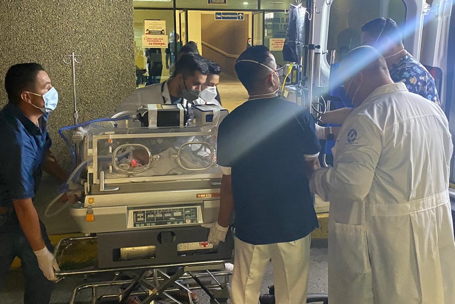 Con apenas 12 días de nacida, la niña Victoria fue trasladada del Hospital Regional Universitario al Hospital Infantil “Federico Gómez” de la Ciudad de México, para recibir atención especializada por un padecimiento congénito.