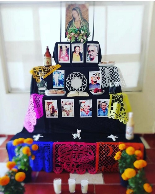 Los altares de muertos pueden ser de diversos estilos o tamaños, aunque lo que no puede faltar las fotografías de los difuntos que se honran, veladoras, flores, comida y bebida que más les gustaba, algunas prendas y accesorios muy personales, papel picado, calaveritas de azúcar, pan de muerto, agua natural, aserrín, sal y una breve semblanza del difunto o difunda que se recuerda, entre otros elementos.