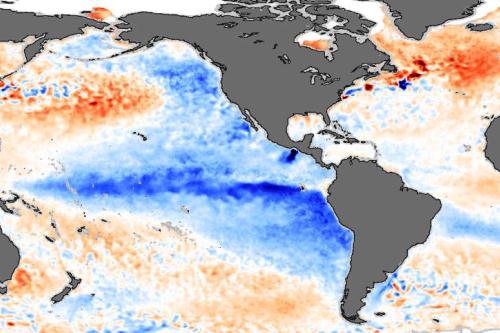 La Niña —fase fría del fenómeno climatológico El Niño Oscilación del Sur (ENOS)— también se caracteriza por el descenso de, al menos, 0.5 grados Celsius por debajo del promedio trimestral de la TSM.