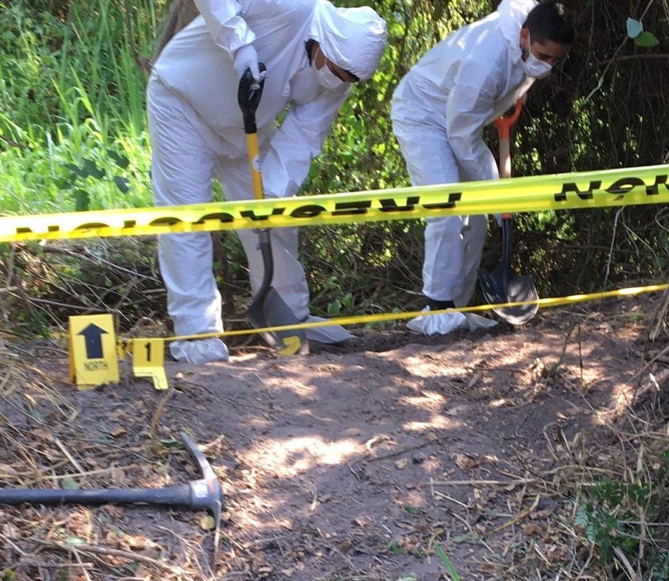 El hallazgo fue realizado en tres predios cercanos a ese poblado, a un costado de una brecha que conduce rumbo a un cerro, donde agentes de la corporación realizaron los trabajos, con apoyo de peritos de la Dirección de Servicios Periciales y personal del Servicio Médico Forense, con el apoyo de efectivos del Ejército mexicano y la Guardia Nacional.