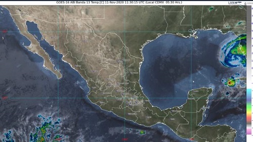 La tormenta tropical “Eta” se desplazará sobre el noreste del Golfo de México, su extensa circulación favorecerá el ingreso de humedad con probabilidad de chubascos y lluvias puntuales fuertes en la Península de Yucatán, además de rachas de viento de 50 a 60 km/h en Yucatán y Quintana Roo.