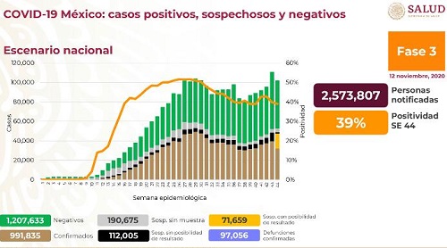 Al corte de hoy jueves 12 de noviembre hay 991 mil 835 casos confirmados Covid.