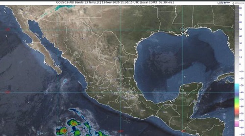 En el resto del Territorio Nacional, prevalecerá bajo potencial de lluvias, además de ambiente frío con posibles heladas al amanecer en zonas montañosas del norte y centro.