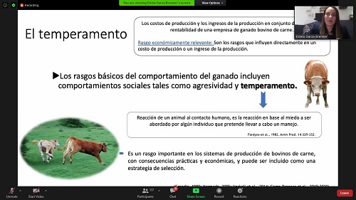 Con la videoconferencia “Temperamento de bovinos de carne y su relación con parámetros productivos”, impartida por Estela Garza Brenner, investigadora de la Facultad de Agronomía de la Universidad Autónoma de Nuevo León, iniciaron los trabajos del 1er Congreso de Producción Bovina, Ovina y Caprina, en la modalidad a distancia, organizado por la Facultad de Medicina Veterinaria y Zootecnia (FMVZ) de la Universidad de Colima, campus Tecomán.